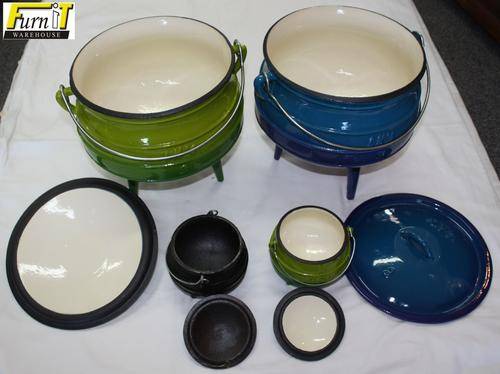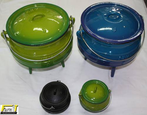 Please also have a look at all our other product available through BOB. We now stock a whole range of 3 legged pots!!!! Some in traditional BLACK cast iron, but also available in RED, GREEN and BLUE. Sized range from as small as the MINIATURE. 0.05litre to the POPULAR #1/4 (0.7litre) used for starter dishes and sauces, some pots as big as #25's (70.5litre). PLEASE NOTE that only some of the popular lines are advertised on BOB at the moment, so if interested in a specific size or number, please contact with us through the question section and we can take it from there. Hereunder some examples of the others we have in stock: