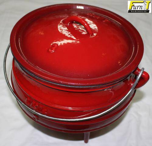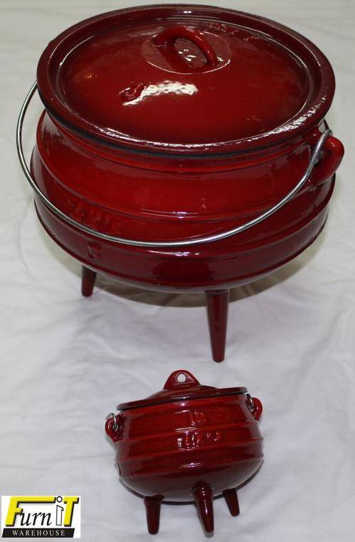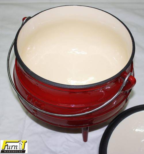 Here we offer a Potjiekos Pot Size No3 (7.8L, Made from Cast Iron and finished in RED ENAMEL on the outside and IVORY ENAMEL on the inside.