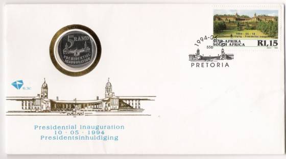 CRAZY R1 - ORIGINAL COIN on the ORIGINAL FDC-MANDELA PRES. INAUG.
