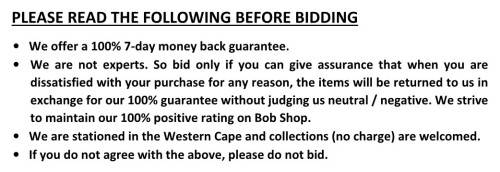 I am not an expert and do not offer any guarantee regarding the authenticity and age of the products. However, the photos are as per the items in our possession, and we tried to give as much detail as possible to the photos.
