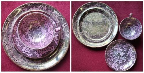 4. 3-Piece pink Rock set consisting of cup and saucer, and small / cake plate