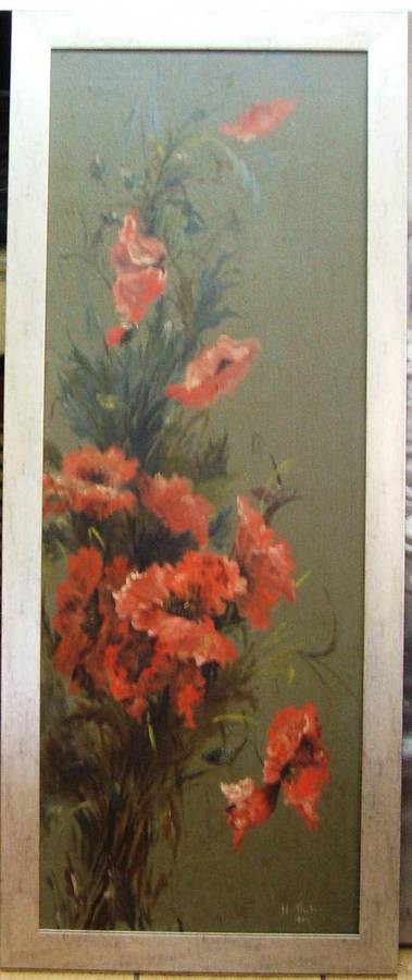 CRAZY R1 START, FRAMED ORIGINAL OIL PAINTING, RED FLOWERS