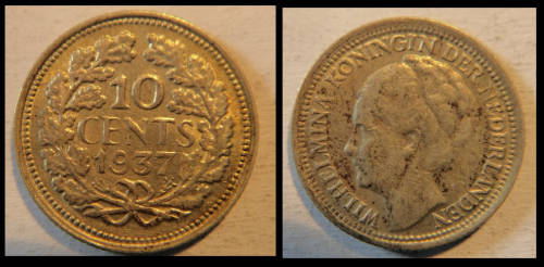 Crazy R1 Start! Netherlands SILVER 10 Cent of Queen Wilhelmina of 1937