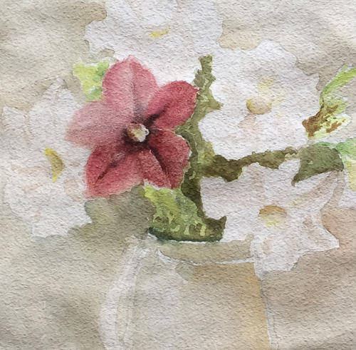 | Description of artwork | This pretty still life watercolour was painted by June Hillard, signed lower right corner. The work is framed in a gold frame and cream mount board - ready to hang! |