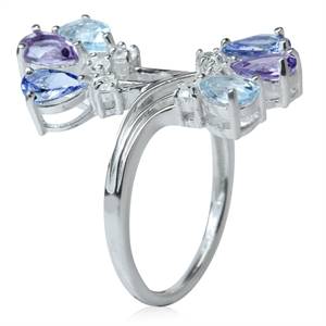 CRAZY R1 START! OUTSTANDING {GENUINE} TANZANITE, AMETHYST & TOPAZ RING