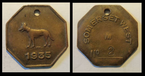 Crazy R1 Start! Somerset West Dog License for 1935 stamped 2