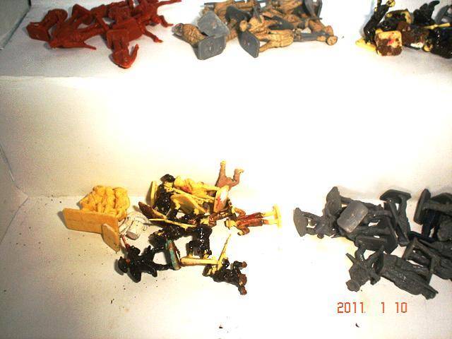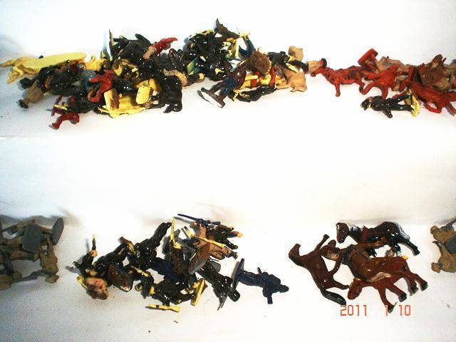 These figures seem to be from the American civil war era (20mm tall look like HO or OO. Scale). I have no knowledge of these items, please have good look at the photos. All in good condition
