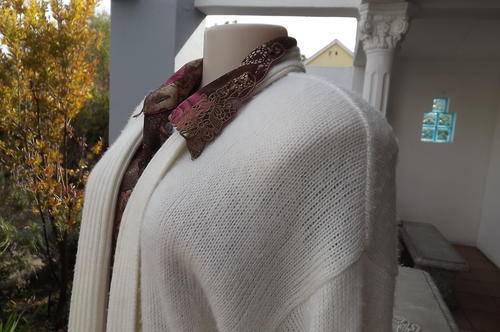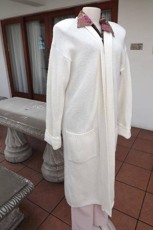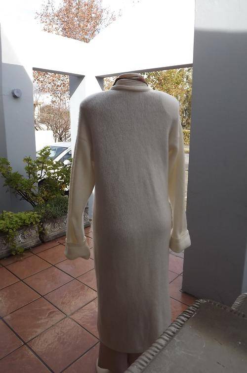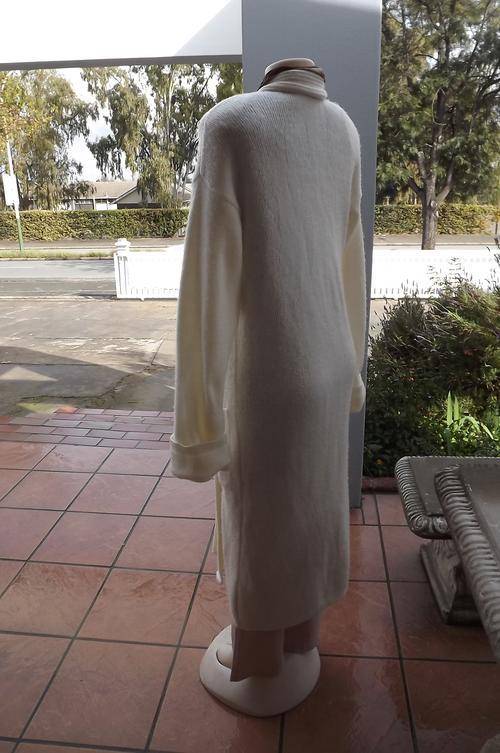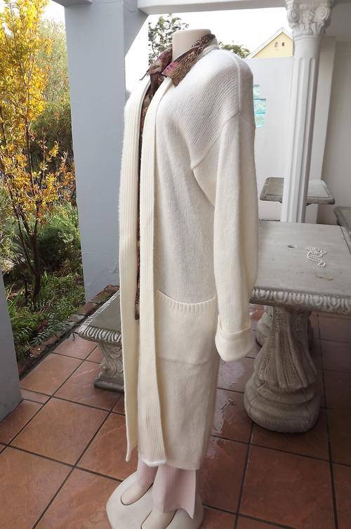 Cream acrylic knitted long coat.Loose hanging.Best fit size 42/18.Extra long fold over cuffs sleeves