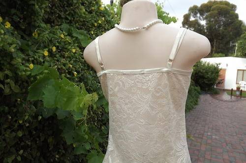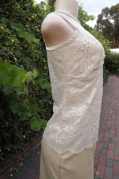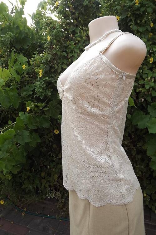 Fabulous cream Vera Moda U.S.A lace and satin strappy top in size 34/10 with embellished front. Suitable for casual or smart evening wear. As new. Well known European make!