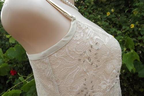 Cream Vera Moda U.S.A. Lace and satin strappy top in size 34/10 with embellished front.As new