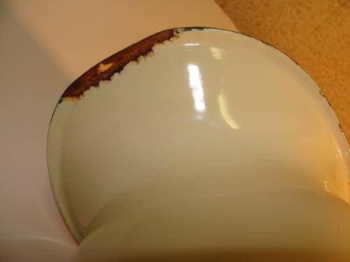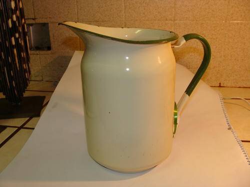 CREAM WITH GREEN TRIM ENAMEL WATER PITCHER JUG ~ IDEAL FOR THE TOP OF A WASH STAND. BEAUTIFUL DECORATIVE PIECE