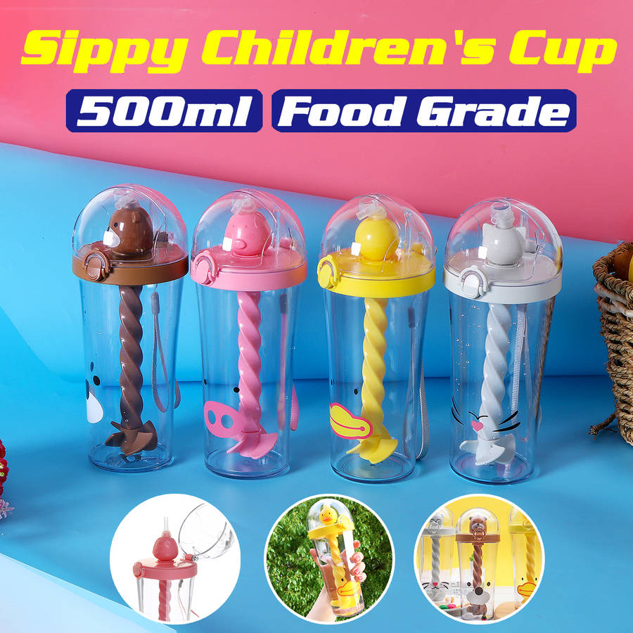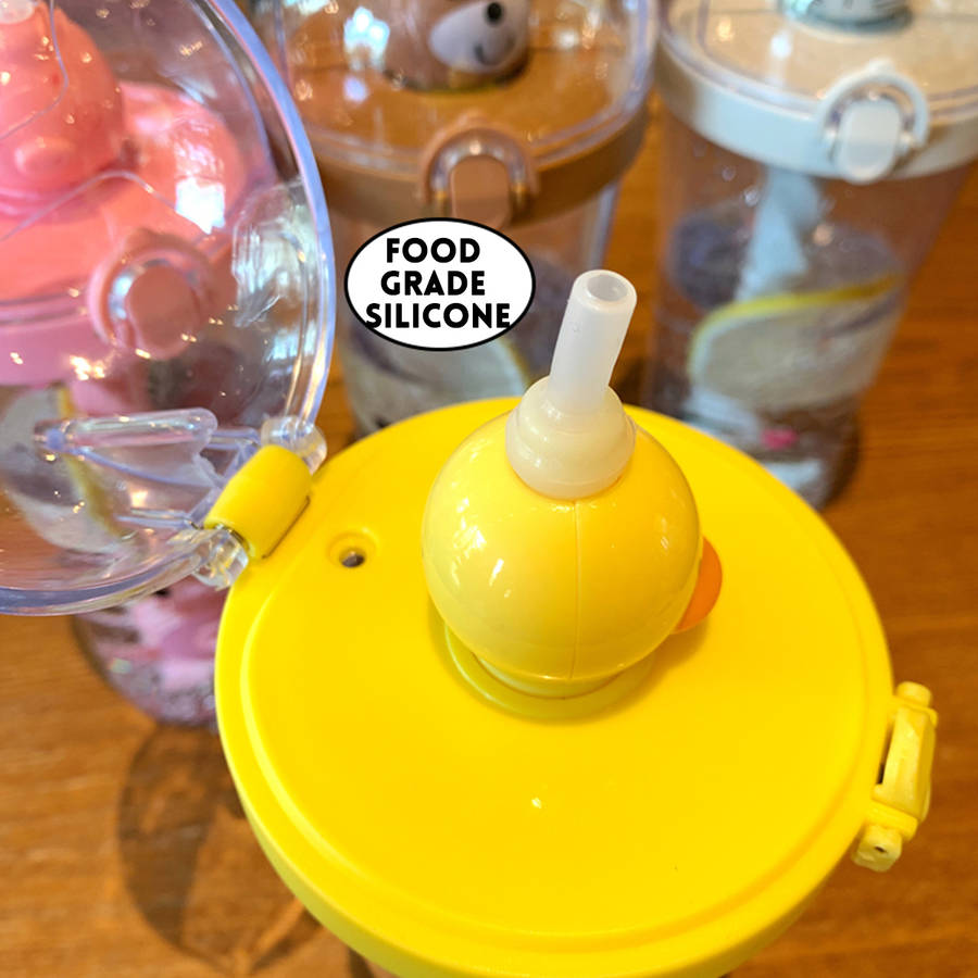 Description: Creative Silicone Kids Baby Sippy Lids Stretchable Spill Proof Cup for Drinking Specification: Color: Yellow / pink / Brown / gray Materials: food grade silicone + AS+PP Capacity: 500ml Type: Duck / pig / bear / cat Product Heat Resistance: -20~106ᆪC Features: - Made with food grade silicone, it is tasteless, non-toxic and safe to drink. - Built-in sealing ring, 360 degree leakproof, inverted without leaking water. - It is easy to hold without slipping and can be used to open drinking water with one hand. Instructions: Unscrew the spiral straw, hold the elliptical rubber under the straw, pull the straw up and down, and the spiral leaves rotate rapidly to stir. Package Included: 1Pc x Cup More Details: