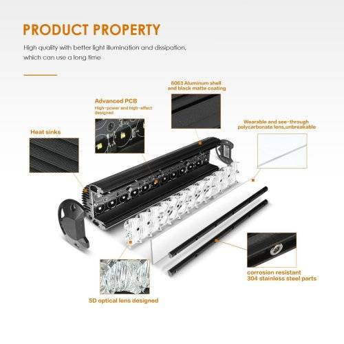 22 inch 5D LED light bar, with 40pcs*3W intense CREE LED, lighting the entire forward viewing area.