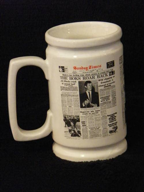 Crescent ware Luipaardsvlei South Africa Beer mug with Sunday Times Glorious win by the Springboks