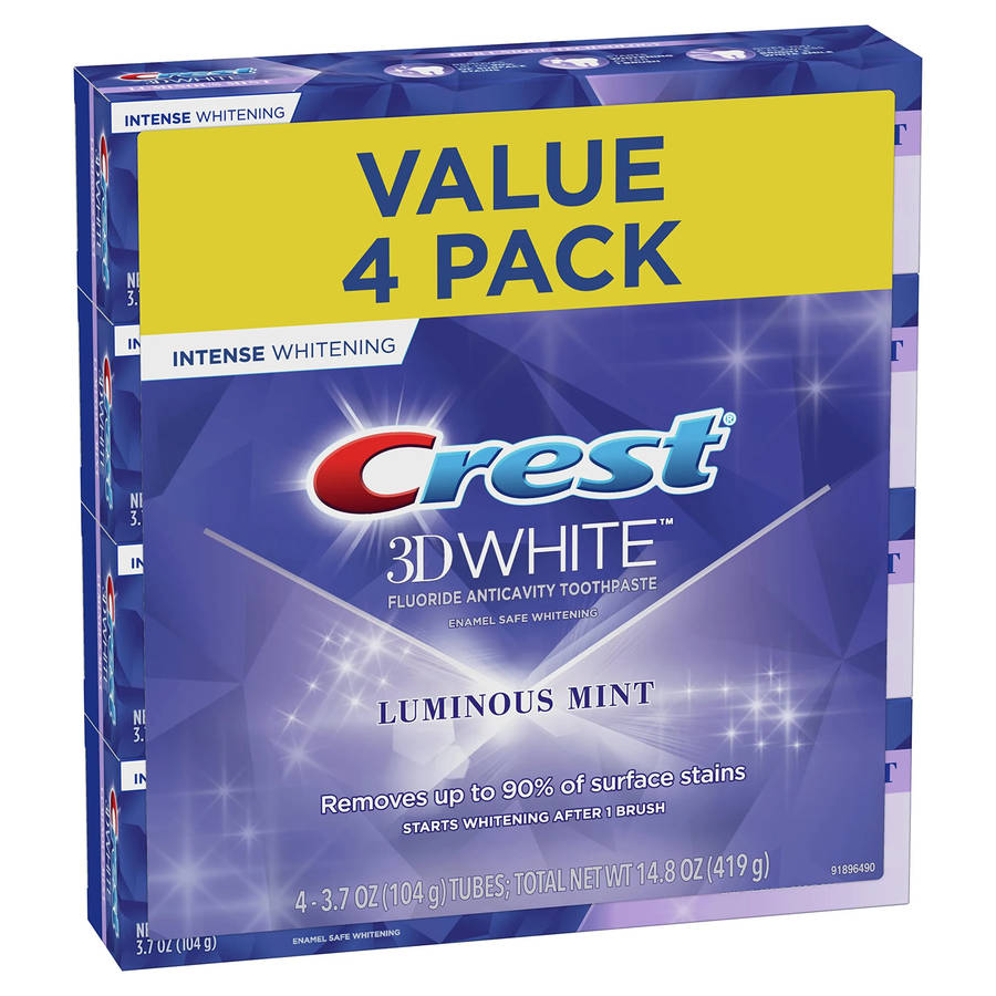 Crest 3D White Luminous Mint Teeth Whitening Toothpaste (Value 4Pack)