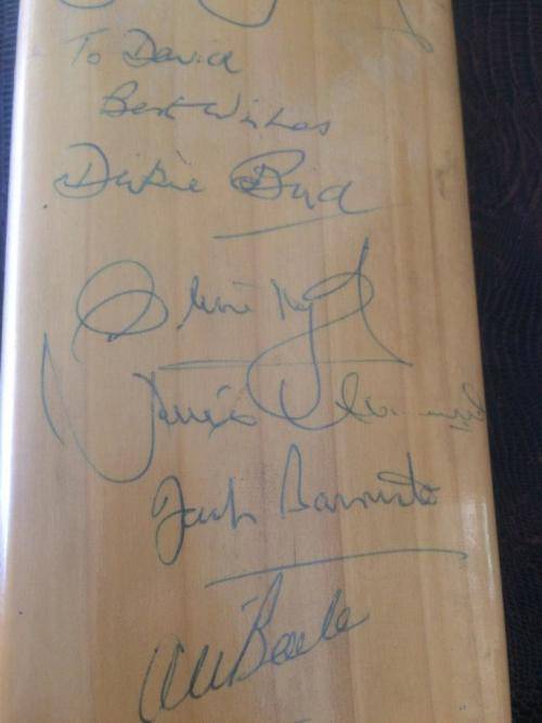 CRICKET BAT WITH 21 SIGNATURE INCLUDING DICKIE BIRD
