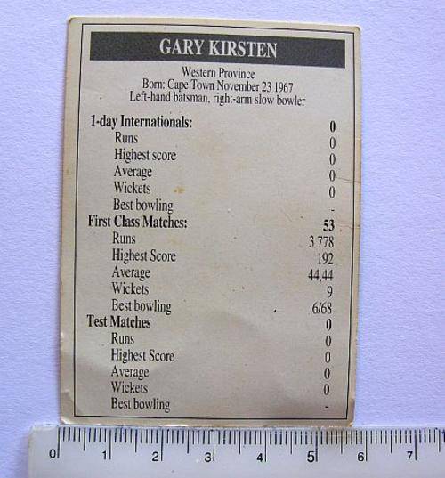 CRICKET TRADING CARD - TOPSPORT TV 1 - 1993 - GARY KIRSTEN