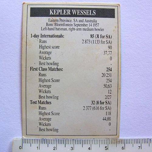 CRICKET TRADING CARD - TOPSPORT TV 1 - 1993 - KEPLER WESSELS