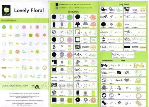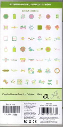 The Lovely Floral cartridge is filled with tags, flowers, and phrases that are great additions to scrapbook pages, home décor, cards, and other projects. Use with all Cricut® machines. Includes Font feature, numbers and common punctuation.