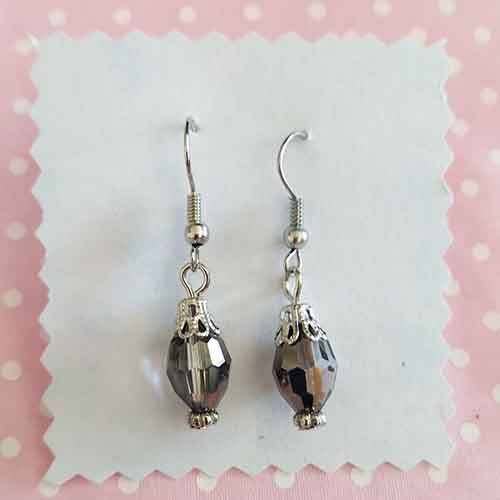 Cristia Earrings, Smokey AB Crystal Beads With Nickel Shepherd`s Hook, 35mm, 1 Pair