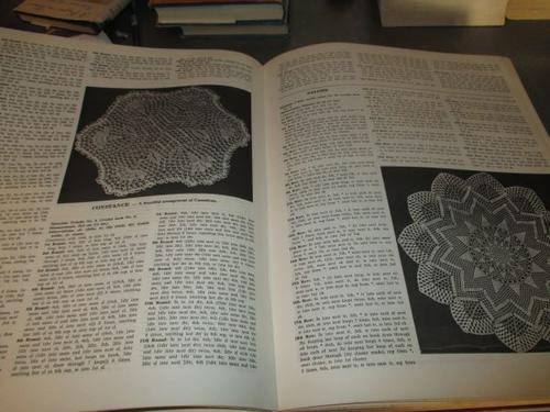 Large hardcover with dustjacket in good condition. Some mild top edge foxing and the jacket has a little edgewear. Two secret patterns that were sold with this book are still inside.