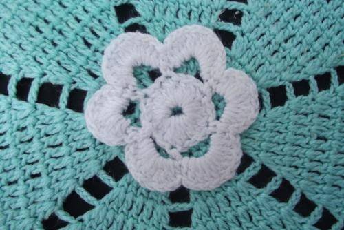 Crocheted Turquoise Doily with White Centre - 43cm diameter