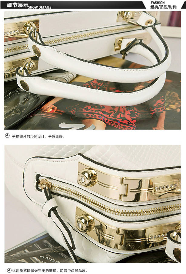Crocodile embossed strong leather hard shell handbag. Black color. Large size