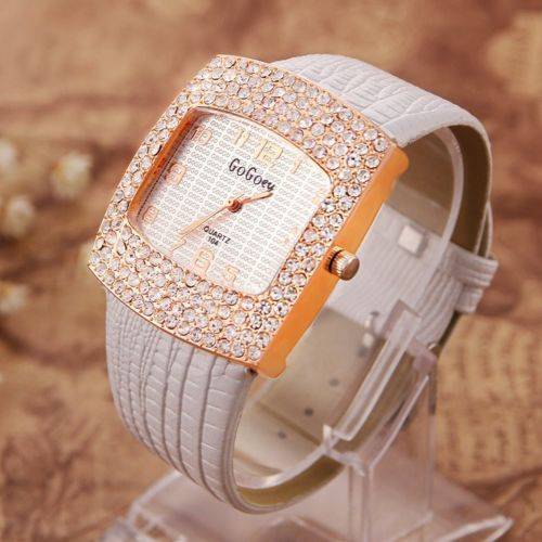 Square Coffee Dial Lady Men White Leather Strap Quartz Wristwatch