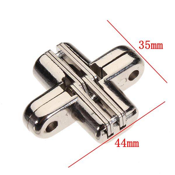 Description: Cross Door Hinges Concealed Door Hinges Zinc Alloy Hidden Door Hinges Material: zinc alloy, chromium plating, stainless steel 304 in connector Type: Cross type concealed door hinge. Size: 44X35mm Gap: 11.5mm Opening angle: 180 degree Installation: disregard left hand and right-hand Color: Sliver Scope: Cabinets, Wardrobes , Bathroom Cabinets , Shower Room , Office And Other Furniture Handle