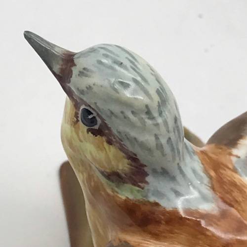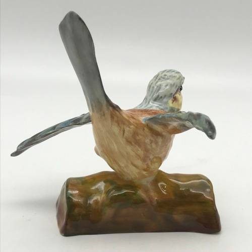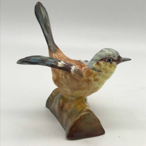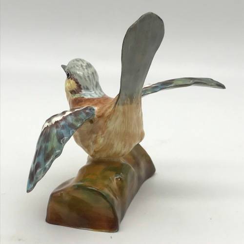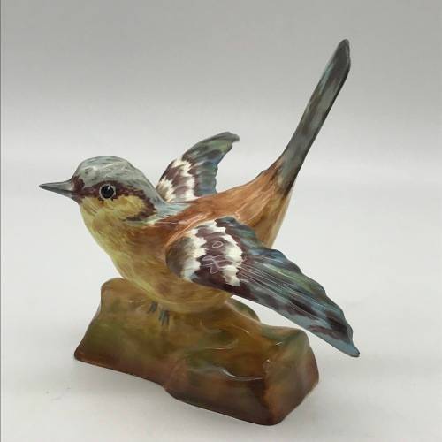 This lovely, early, bone china figure of a bird (Chaffinch) perched on a branch, is beautifully hand painted with 'life-like' colours and detail. It was manufactured by the well-known 'Crown Staffordshire' factory in England and designed and modelled by 'Jack T. Jones' (born 1898), who joined the factory at the very young age of 13, where he spent 47 years, 30 as the art director. This beautiful bird is in excellent condition and carries the factory's backstamp on the base. The figure measures 10,5cm x 9cm and stands 9,5cm high.