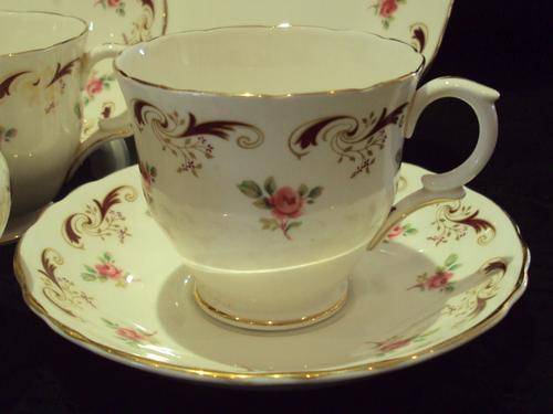 A BEAUTIFUL CROWN STAFFORDSHIRE TEA SET IN THE WENTWORTH PATTERN. THE SET HAS SIX TRIOS BUT 2 CUPS HAVE MINOR DAMAGE AND ARE INCLUDED AT NO COST