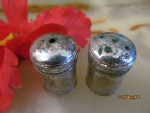 Manufactured in the early part of the 1900's, a silver plated miniature Cruet Set consisting of Both the Salt and Pepper Shakers. Since these are miniature they would be used in a travel capacity and are IDEAL collectable items but also serve an Ornamental purpose. I have also discovered that Cruet Miniatures such as these were also employed in the use of containing Wig powder