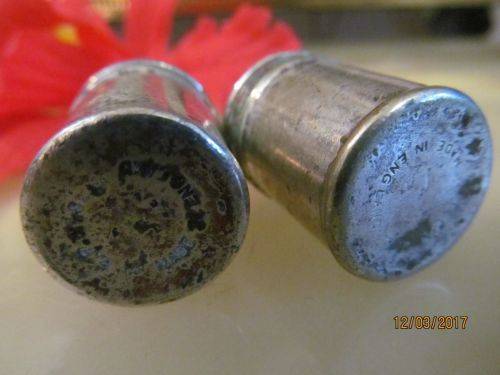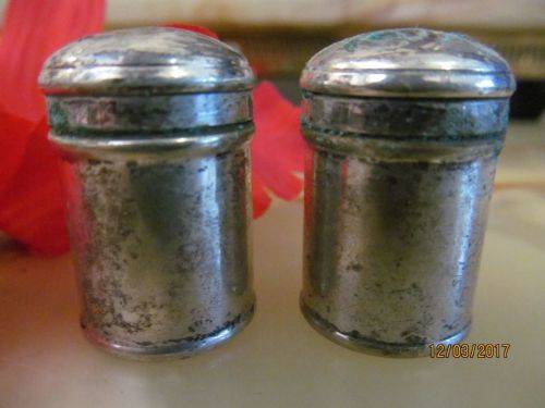 ANTIQUE SET OF SILVER PLATED MINIATURE SALT AND PEPPER SHAKERS - CRUET SET