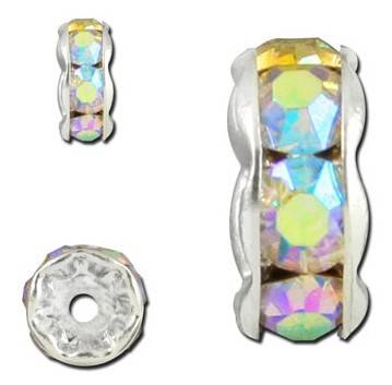 Classification Roundel / Rondelle / Spacer Shape Round "flower" Size 6mm Colour Silver plated with Crystal AB rhinestones Quantity Sold one at a time Picture Actual photo from supplier