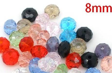 CRYSTAL FACETED GLASS BEADS - 8 MM - RANDOM MIXED COLORS