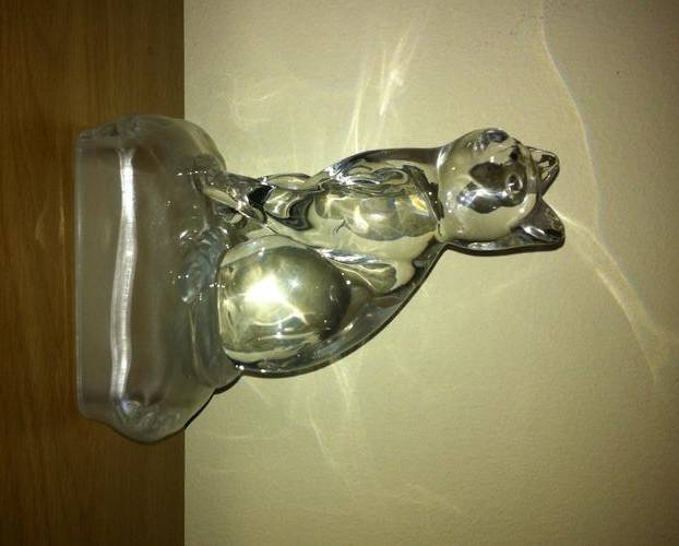 Crystal Glass Cat paper weight or ornament on frosted glass base