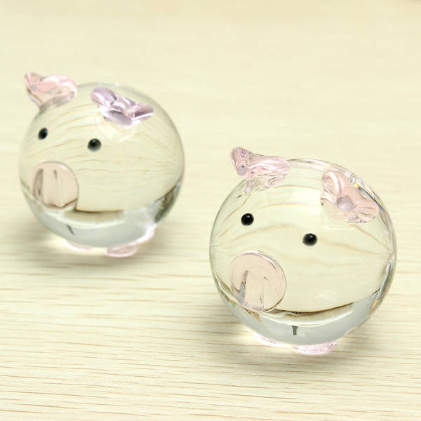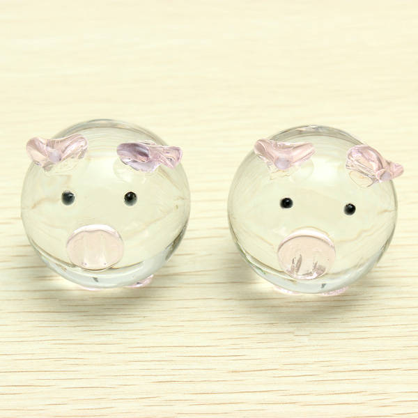 2x Crystal glass pig