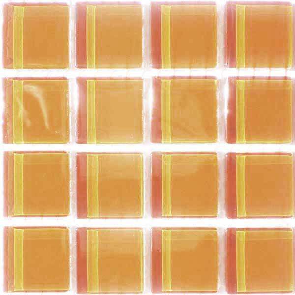 These tiles are clear glass with the colour fused onto the back of the tile through a rapid firing process.