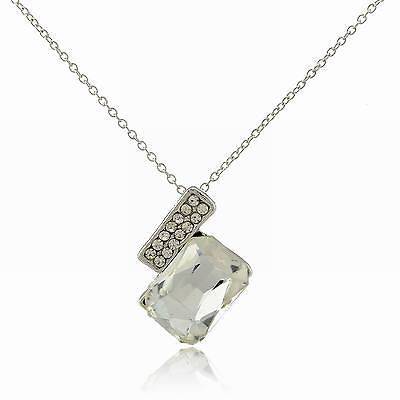 Silver Plated Acrylic Austrian CZ Rhinestone 18" Chain Necklace