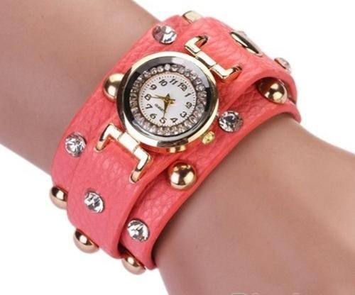 Unique in design, this eye-catching crystal stud faux leather bracelet watch is a really special gift for you and your friends.