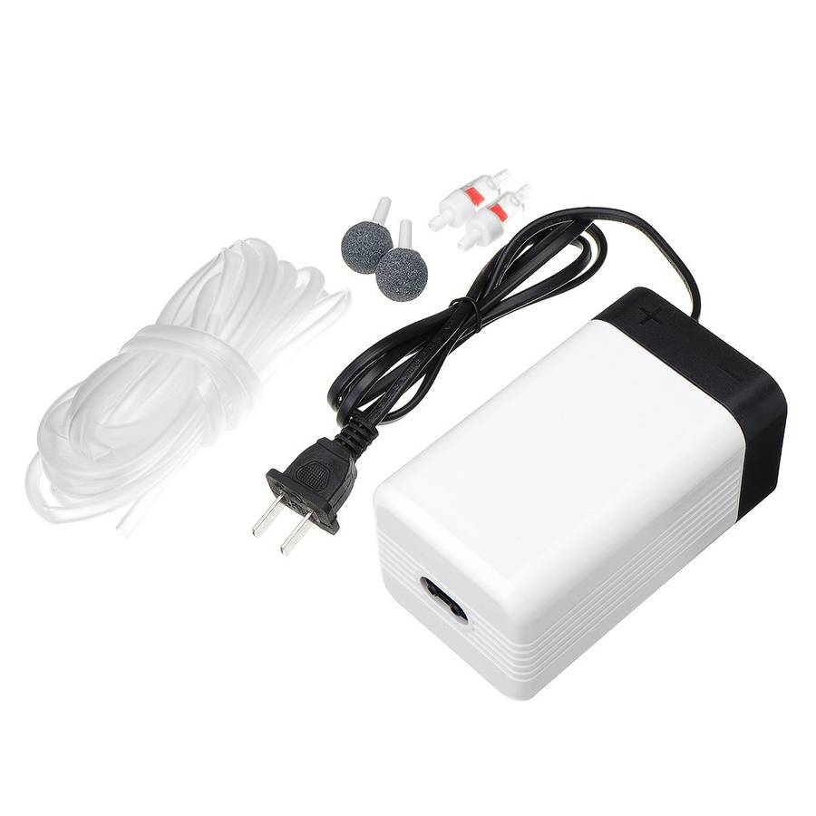 Specifications: Name:Air Pump Power:4W Outlet: 4mm x2 Length of the Cord: 110cm Voltage: 220v 50HZ Max Pressure: 12Pa x2 Size: 120x70x62mm Air Displacement: 90 L/hour x2 Features: - 2 AIR OUTLETS:can support 2 air stone or airlift filter - COPPER MOTOR: energy saving & longer usable life - 110 CM POWER CABLE:long enough for many places - AIR FLOW CONTROL: adjustment for air flow level and noise - SOFT SUBBER FEET: to minimize vibration and noise (<50db) - HANGING HOOK:to save storage space; simple, yet efficient design - suitable for BOTH FRESHWATER AND SALTWATER AQUARIUM/PONDS NOTE: - The air pump should be placed in a dry and cool place as high humidity will shorten its usable life. Package Included: 1 x Air Pump 2 x Air Stone 2 x Air Tube 2 x Non-return Valve