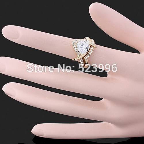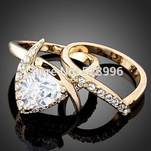 CUBIC ZIRCONIA WITH RINESTONES TRIANGLE 24K GOLD PLATED RING SIZE9