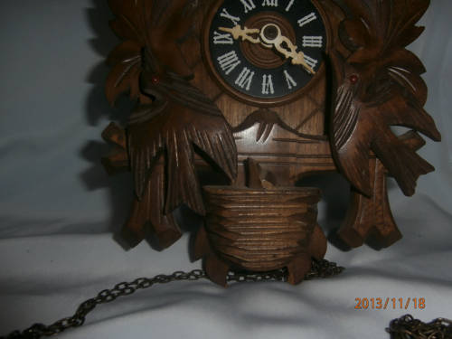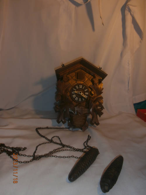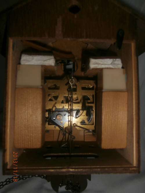 THE BIRDS ON THE LEFT AND RIGHT MOVE WITH THE CUCKOO BIRD WHEN IT CUCKOOS EVERYTHING LOOKS IN PLACE BUT I AM LETTING IT GO AS IS COMES WITH THE 2 PENULIM CONES AND THE BELLOWS ARE STILL IN PERFECT ORDER