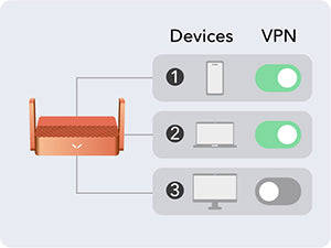 Out of the security or performance concerns, you can choose specific devices to use the VPN in the device management panel.