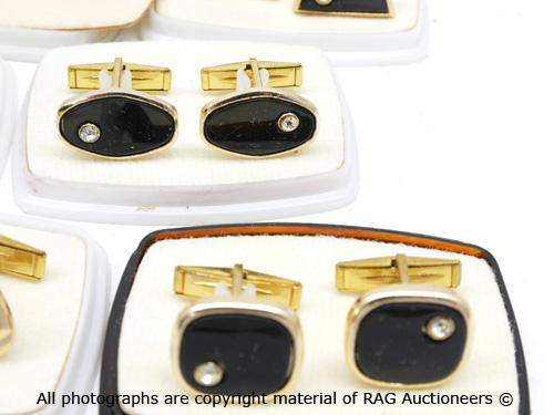 8 Cufflink sets in Gold (colour) with black, cream and white. Please note these may differ slightly from the photographs |
