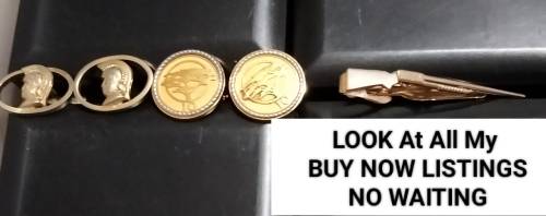 END OF 2 different styles gold tone cufflinks 1 Tie clip-SOLD AS IS IN PICTURES CONDITION - LISTING