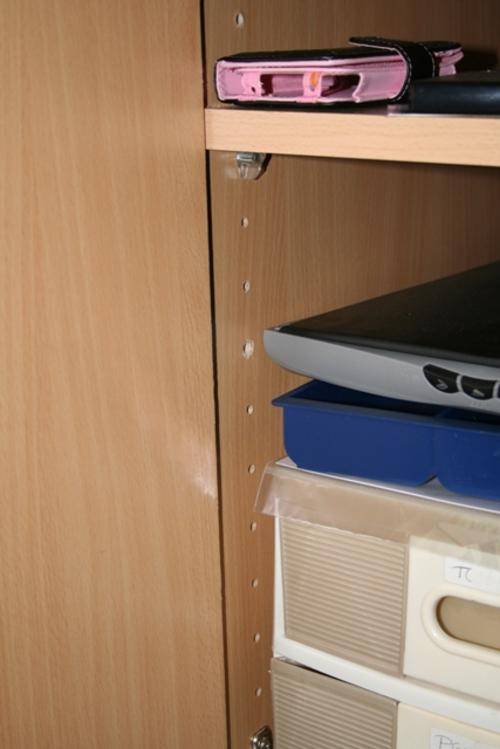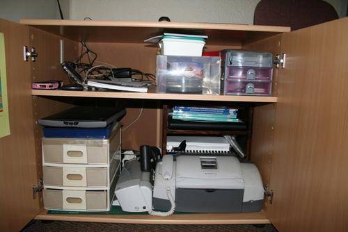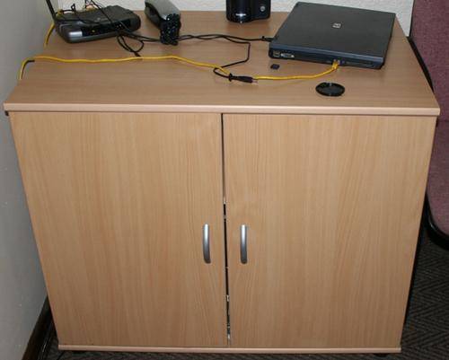 This sturdy cupboard has served as my home office for a while and therefore has holes cut out of the back to allow for cables.