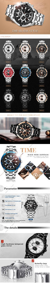CURREN 8023 Fashion Men Style Watch Waterproof Fake Three Dials Analog Quartz W