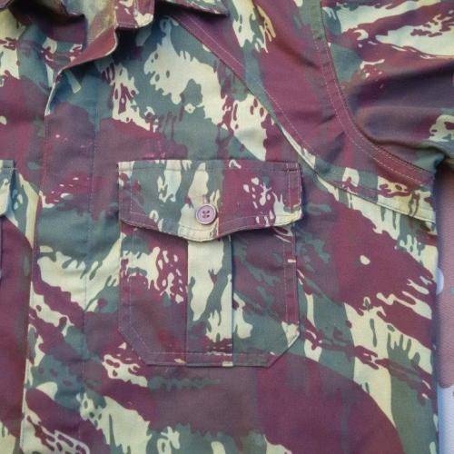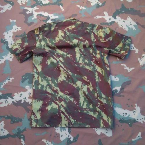 Here we have on auction a rarely seen and difficult to source current tissue Mozambique army short-sleeve combat uniform shirt in the FADM (Moz Army) red horizontal lizzard pattern camo derived from the more well-known Portuguese lizzard camo pattern from pre-colonial times.
