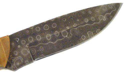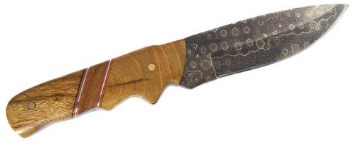 The Damascus blade of this knife has been hand forged from 1095 and 15N20 high carbon steels and the cutting edge heat treated to attain a hardness of 50-55 on the Rockwell scale.